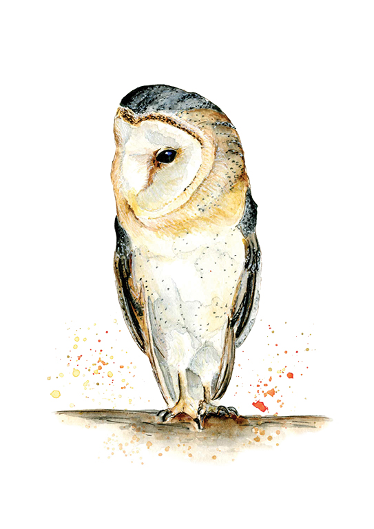 Hozd el otthonodba az éjszakai erdők misztikus hangulatát ezzel a lenyűgöző gyöngybagoly portréval. A lágy akvarell technika tökéletesen adja vissza a madár selymes, krémszínű tollazatát és mély, mindent látó tekintetét. Az aranyszínű és szürke árnyalatok finom játéka, valamint a háttérben megjelenő apró festékpöttyök modern, mégis időtlen művészi hatást kölcsönöznek az alkotásnak.