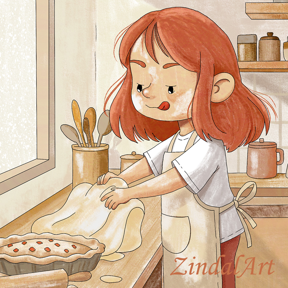 Girl baking cookies print