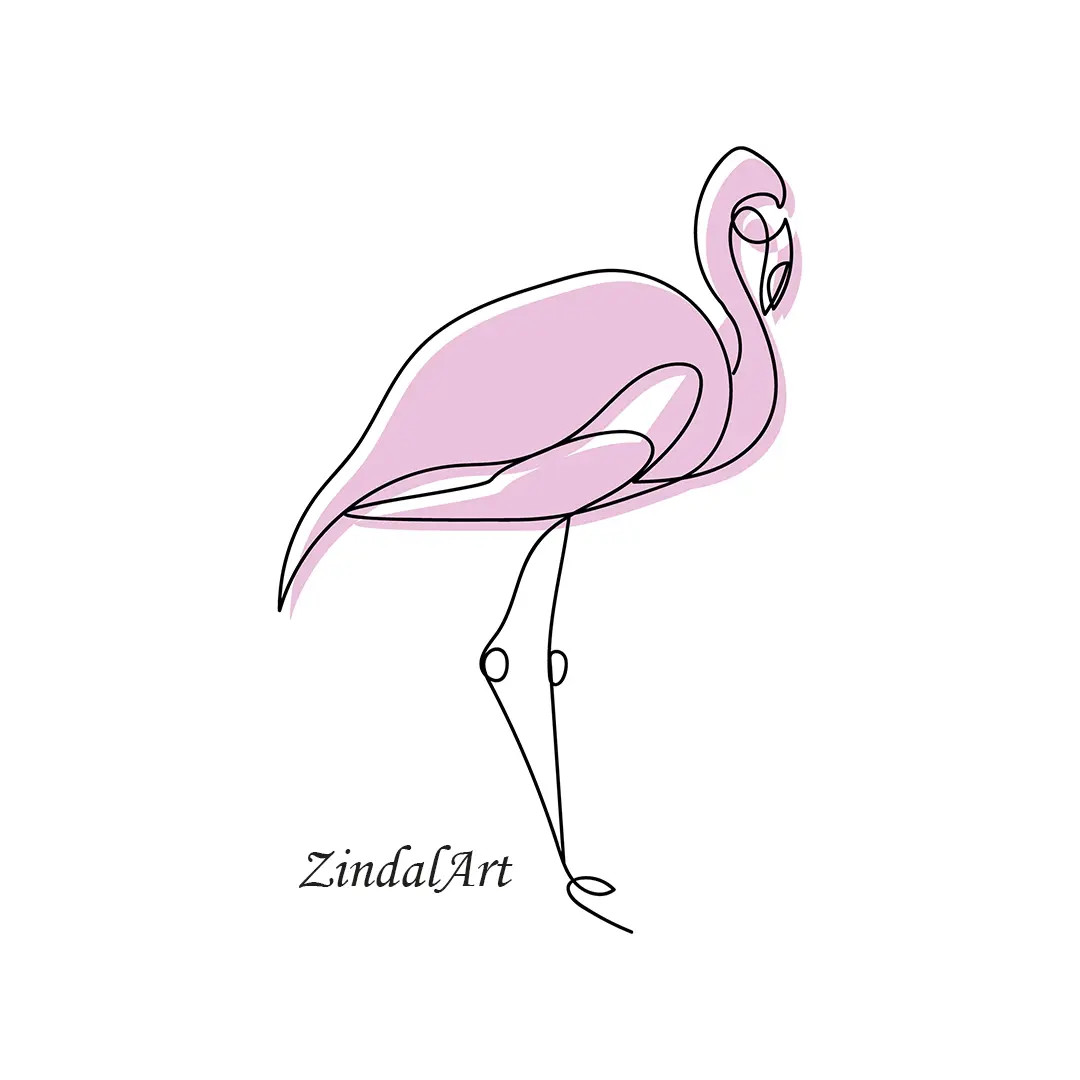 Bring the modern tranquility of the tropics into your home with this clean, sophisticated flamingo illustration. The fusion of a continuous black line and a soft, ethereal pink blush creates a contemporary piece that is both playful and remarkably elegant. It is an excellent choice for lovers of Scandinavian or minimalist decor who are looking for a subtle pop of color to brighten white walls.