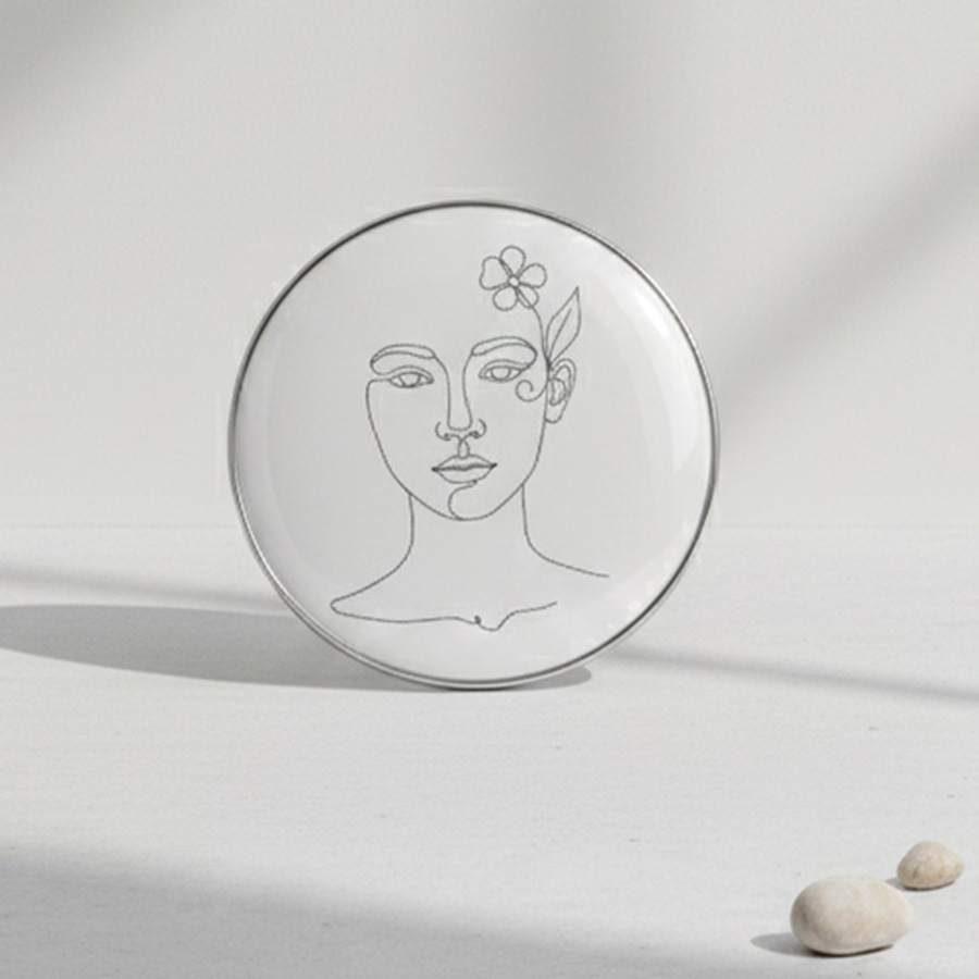 Ez a minimalista női arckép kitűző a legújabb one-line art trendeket követi. Ha egyedi kiegészítőt keresel, ami feldobja a táskádat vagy kabátodat, ez a virágos motívummal díszített rajz tökéletes választás.